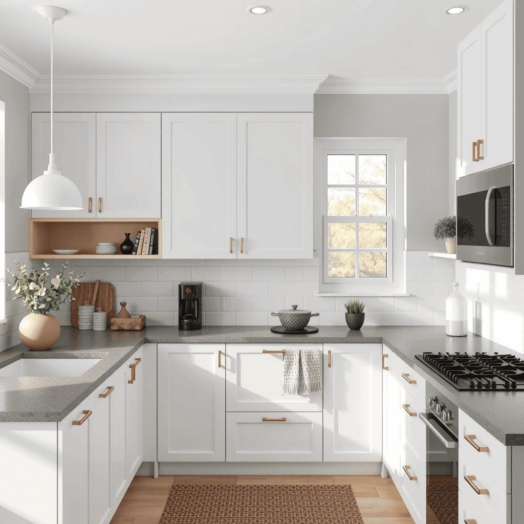 Do: Optimize counter space to facilitate food preparation, cooking, and cleanup. Integrate open shelving to enhance storage capacity and display cherished kitchen essentials.